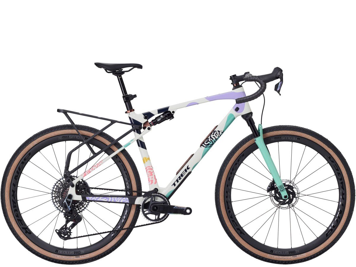 De CheckOUT SL 7 AXS is een volgeveerde gravelfiets voor ruige wegen, singletracks en alles wat je onderweg tegenkomt. Het carbon frame heeft 55 mm achtervering via een RockShox SIDluxe IsoStrut-demper, gecombineerd met een 60 mm RockShox Rudy XL-voorvork voor extra controle op onbekend terrein. Hij zit boordevol prestatieverhogende upgrades zoals Bontrager Aeolus Pro 3V carbon wielen, een 12-speed SRAM Force AXS E1-aandrijving en een draadloze RockShox Reverb AXS-dropper zadelpen. Alles-in-één veersysteem Dankzij de 55 mm achtervering en de nieuwe 60 mm Rudy XL verende voorvork die ontworpen is in samenwerking met RockShox, worden ruwe gravelwegen gladgestreken en kun je comfortabeler en zelfverzekerder over singletracks fietsen in vergelijking met een ongeveerde gravelbike. De ultieme offroad-dropbar Een nieuwe GR CheckOUT gravel dropbar biedt meerdere handposities voor extra comfort en efficiëntie op elk soort terrein. Zet je handen op het smalle stuurgedeelte met de remgrepen voor meer snelheid op vlakke gravelwegen of grijp de extra brede drops voor optimale controle op ruiger terrein. De wetenschap achter volgeveerde gravelbikes Het full-suspension-ontwerp van de CheckOUT zorgt aantoonbaar voor minder vermoeidheid en meer comfort en controle vergeleken met zijn ongeveerde tegenhangers: 7,3% minder zuurstofinname nodig voor de rijder, 41,5% afname in vermoeiende trillingsenergie en 23% minder stuurbewegingen. Enorme bandenruimte Ruimte voor maximaal 56 mm/2.2 inch brede banden, waardoor je probleemloos ruw terrein overwint. Een geometrie met voelbaar meer controle Ervaar meer stabiliteit en comfort tijdens meerdaagse avonturen op gevarieerd terrein dankzij de geheel nieuwe Gravel Adventure-geometrie met een grotere reach en meer stackhoogte. Voorbestemd voor bikepacking Je kunt alles meenemen wat je wilt dankzij 18* framenokken, een geïntegreerde achterdrager die het veersysteem en de dropper zadelpen niet hindert en Adjustable Multi-Mounts waarmee je bidons en uitrusting exact op de juiste plek kunt monteren. *Framemaat ML en groter