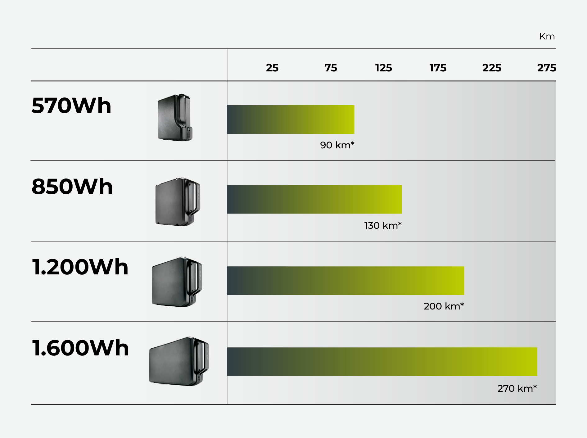 Met een 1.600 wh accu: haal je tussen de 95 en 250 km
